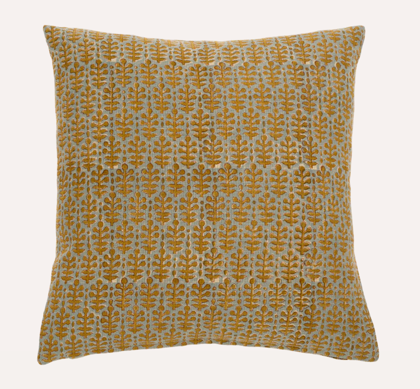 This double-sided block printed pillow comes to life through many artful stages, from the meticulous carving of the wooden blocks to the layered hand printing of each individual color. Entirely crafted by hand and printed on textural cotton slub fabric, each pillow is unique, and slight variations in color and design are to be celebrated. Each pillow includes a premium Responsible Down Standard (RDS) certified feather/down filler, meaning you are choosing ethical practices as well as beautiful design. Machine Wash Gentle.